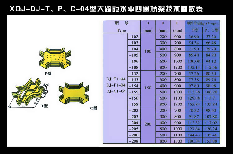 • 產品名稱: xqj-dj-t、p、c-04型大跨距水平四通橋架