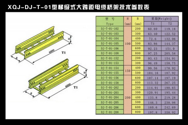 大跨距電纜橋架共包括大跨距的梯級、托盤、槽式、重載荷梯架、直角三通、多節三通、直角四通,以及相應型號的連接件,蓋板和支柱。